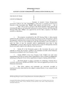 209 Hearing Policy Austin's Colony of Bryan, Texas Posted on September 10, 2025 by Jeff SkeltonSeptember 10, 2025